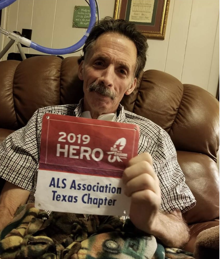 Because I met my fundraising goal, I was given a special bib that got me access to real restrooms versus porter-potties (Whoop! Whoop!). The bib said “2019 Hero—ALS Association Texas Chapter.” I took a picture of it the night before and sent it to my friend’s parents.